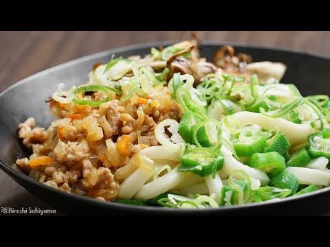 【材料】 ・うどん ・オクラ 5~7本 ・豚ひき肉 150g ・玉ねぎ 1個 ・人参 1/4本 ・塩 少々 ・みりん 大さじ2 ・味噌 大さじ1.5 ・コチュジャン 小さじ2 ・舞茸 1パック ...